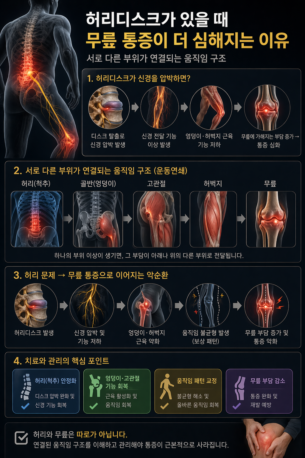 무릎 통증이 오래 가면 허리도 함께 봐야 하는 이유